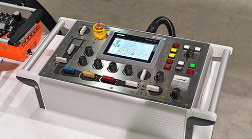 Ein ergonomisches transportables Bedienpult ermöglicht durch die Anordnung der benötigten Schalt-, Regel- und Anzeigeinstrumente auf der Bedientafel in Form eines Manipulators eine intuitive Bedienung. Geschwindigkeiten und Kräfte der Bewegungen lassen sich stufenlos einstellen.
