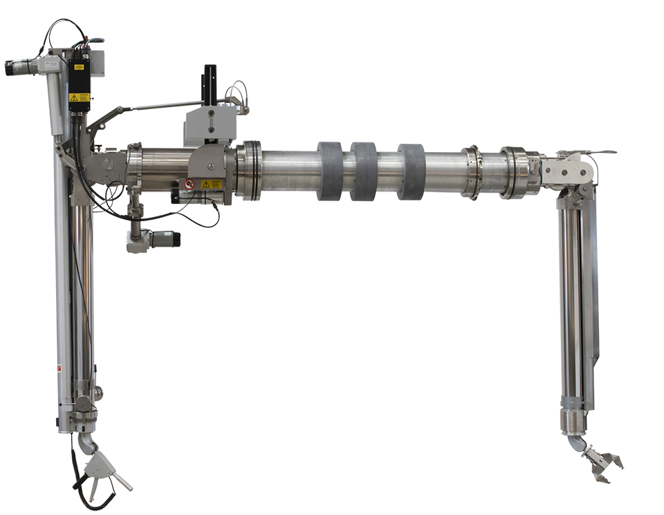 Alle Hauptbaugruppen sind über die gesamte Manipulatorenreihe hinweg austauschbar. Das heißt, dass der kalte Arm, der heiße Arm und das Verlängerungsrohr vom Durchgangsrohr getrennt werden können. Das Durchgangsrohr bleibt also in der Wand, um die Eindämmung aufrechtzuerhalten.