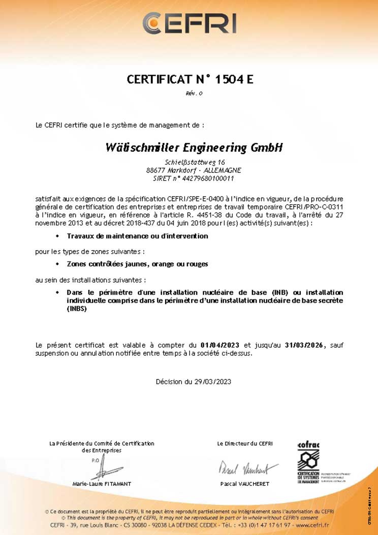 Unser Qualitätsmanagementsystem ist seit vielen Jahren gemäß DIN EN ISO 9001:2015 sowie nach KTA 1401 zertifiziert. Zusätzlich ist unser Umweltmanagementsystem nach DIN EN ISO 14001:2015 zertifiziert.